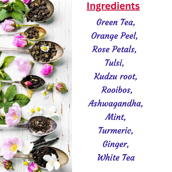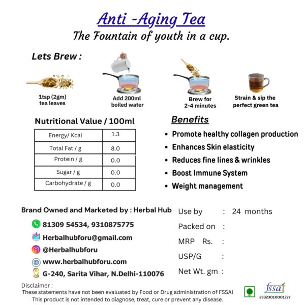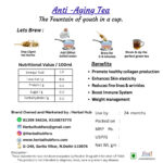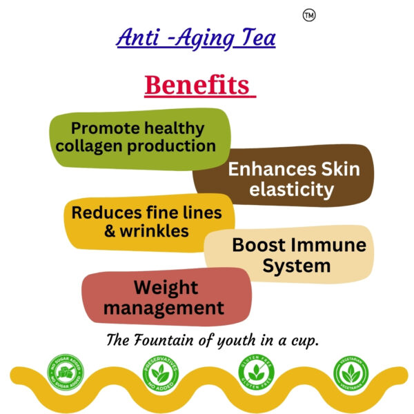 Experience the rejuvenating power of nature with our Anti-Ageing Tea, a meticulously crafted blend designed to help you feel youthful and vibrant. This soothing infusion is rich in antioxidants and nutrients that support healthy skin, improve overall well-being, and promote a sense of balance in your life. Unlock the secrets to looking and feeling your best, one cup at a time.