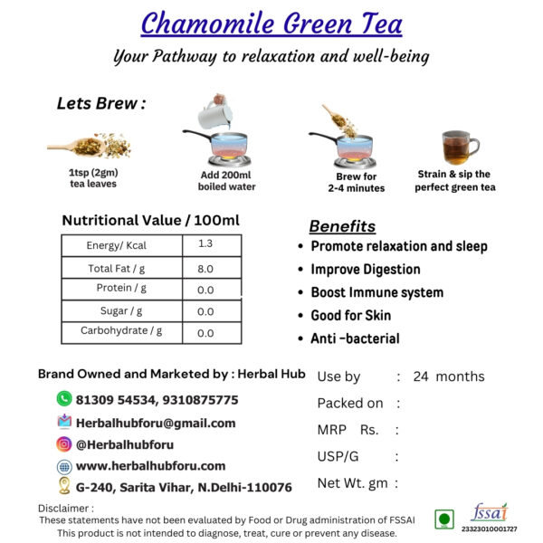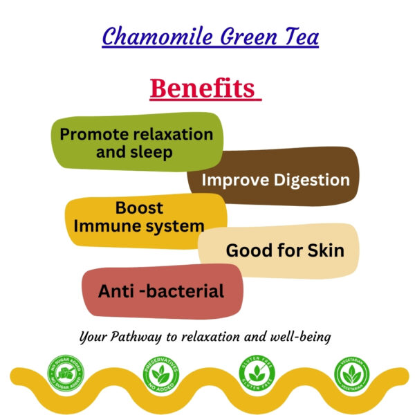 Indulging in a warm cup of Chamomile Tea not only transforms your moment of pause into a soothing ritual but also offers myriad health advantages. Make the choice today to embrace the serenity that comes with every sip of our exceptional Chamomile Tea. Discover how this simple addition can enhance your life and lead you towards a path of relaxation and wellness.