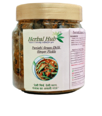 Our Green Chilli Ginger Pickle is a vibrant blend of fresh green chillies and aromatic ginger, expertly pickled to deliver a perfect balance of heat, tang, and spice. Crafted using traditional recipes and high-quality ingredients, this pickle brings an exciting burst of flavor to your meals — from rice and parathas to snacks and sandwiches.