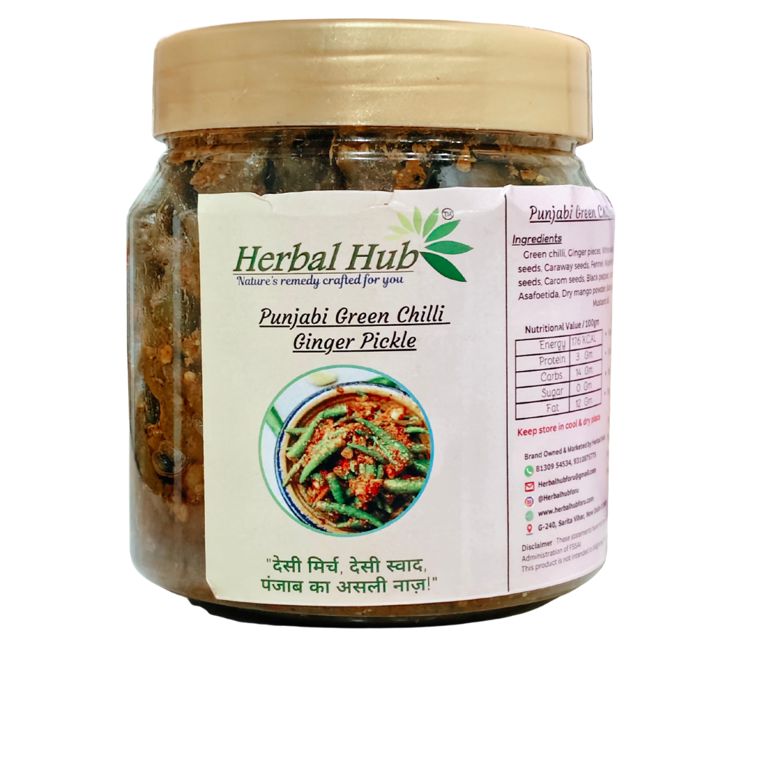 Rich in natural antioxidants and digestive properties, green chilli and ginger also offer health benefits like boosting metabolism and aiding digestion. Whether you enjoy a little heat or love intense flavors, this pickle is a must-have staple for your kitchen.