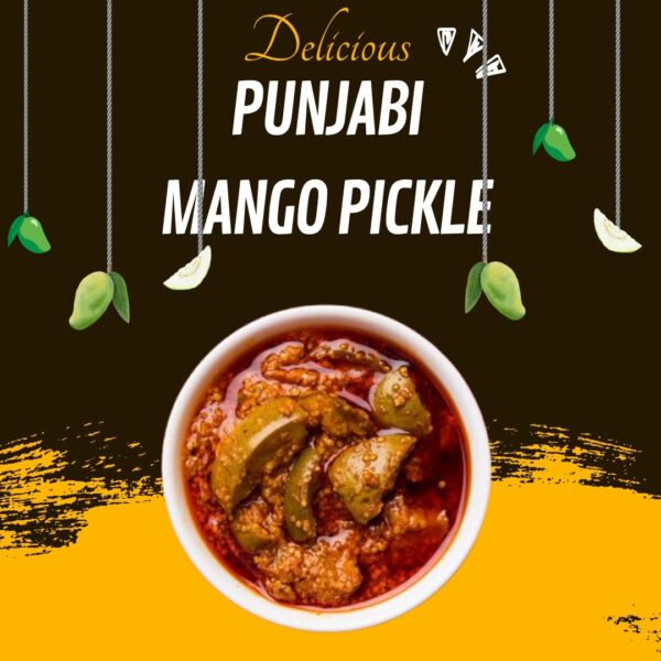 Authentic Punjabi mango pickle — spicy, tangy, and bursting with traditional flavors.